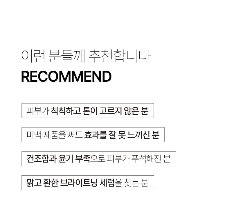 쌀수와 Super Centella,글로타티온, 펩타이드 등 함유되어 안색을 맑고 환하게 가꾸어주며, 더 깊은 브라이트닝 효과를 도와주는 솔루션 입니다.