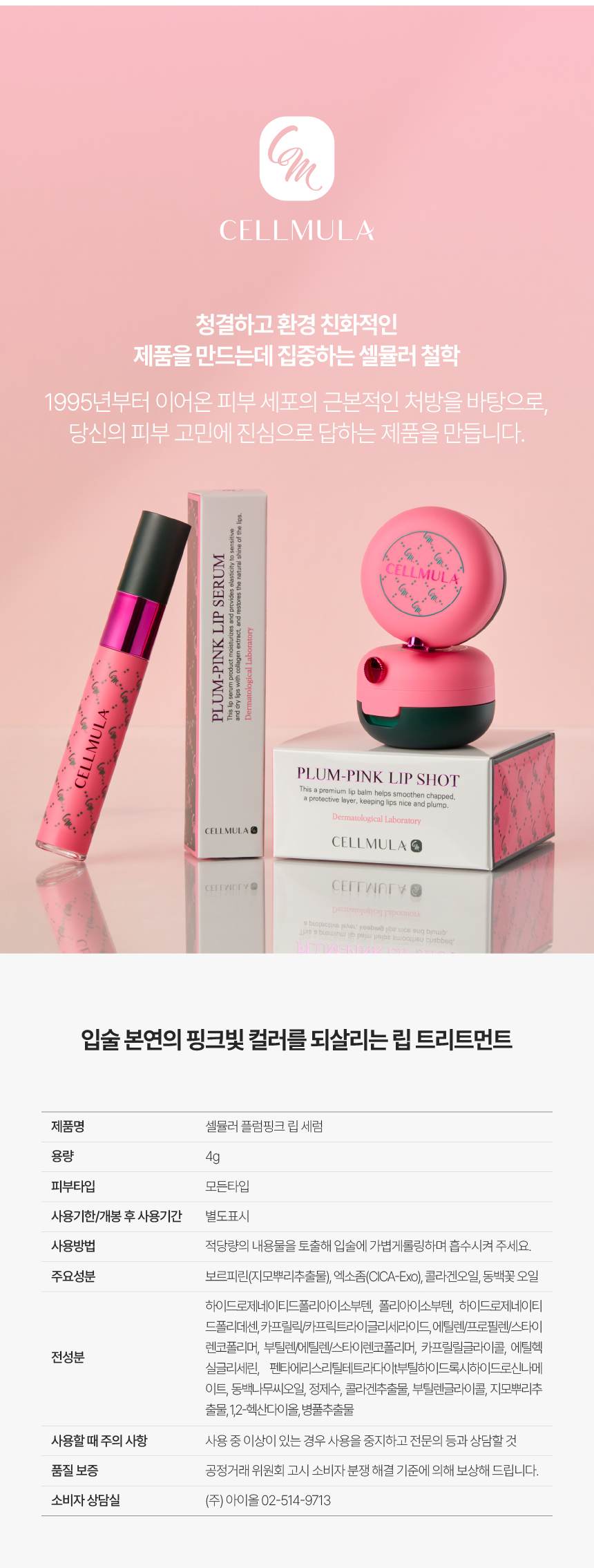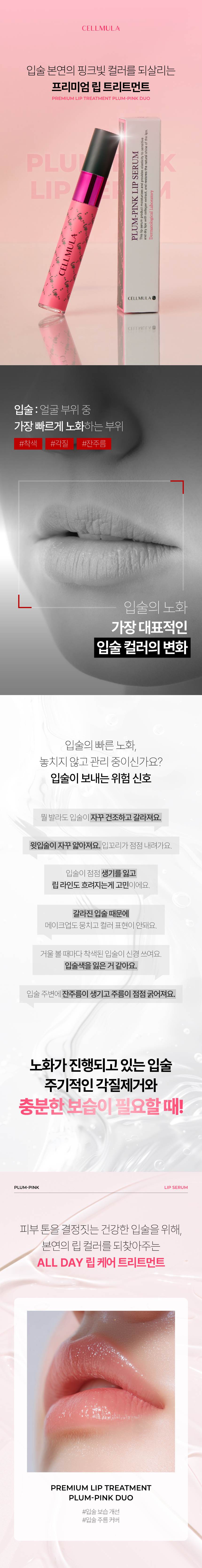 *입술 본연의 핑크빛 컬러를 되살려주는 프리미엄 식물성 엑소좀 플럼 핑크 립 세럼